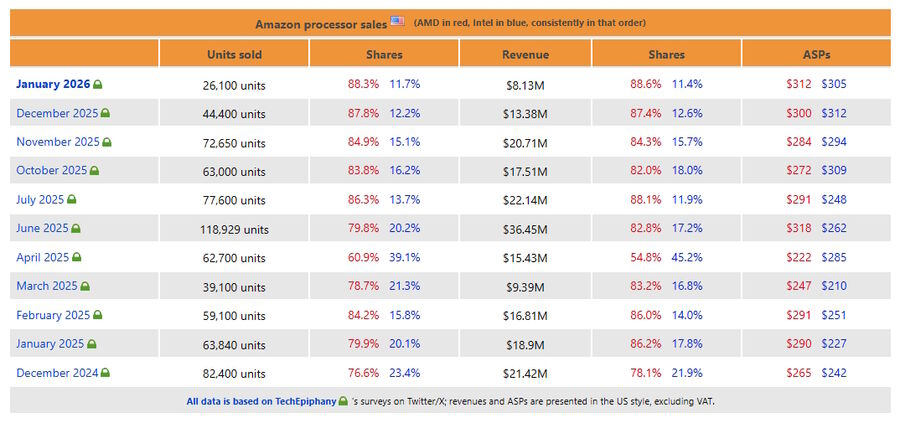Január általában az új fogadalmak hónapja, ám 2026-ban a legtöbb PC-s valószínűleg így vágott neki az új esztendőnek, hogy idén sem nagyon vesz semmit. A TechEpiphany és a 3DCenter friss jelentései alapján az Amazon US processzor-eladásai döbbenetes, 51%-os zuhanást produkáltak a tavalyi esztendőhöz képest. Hihetetlen átalakuláson megy keresztül a hardveripar, és ez nem feltétlenül a jó irány. Ebből is látszik, hogy a piac fele egyszerűen köddé vált.