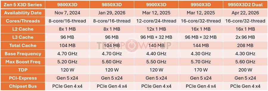 - Órajelek: Az alapórajel 4,30 GHz, míg a boost 5,60 GHz-nél áll meg. Bár ez 100 MHz-cel elmarad a sima 9950X3D-től, a dupla cache bőségesen kárpótol érte.